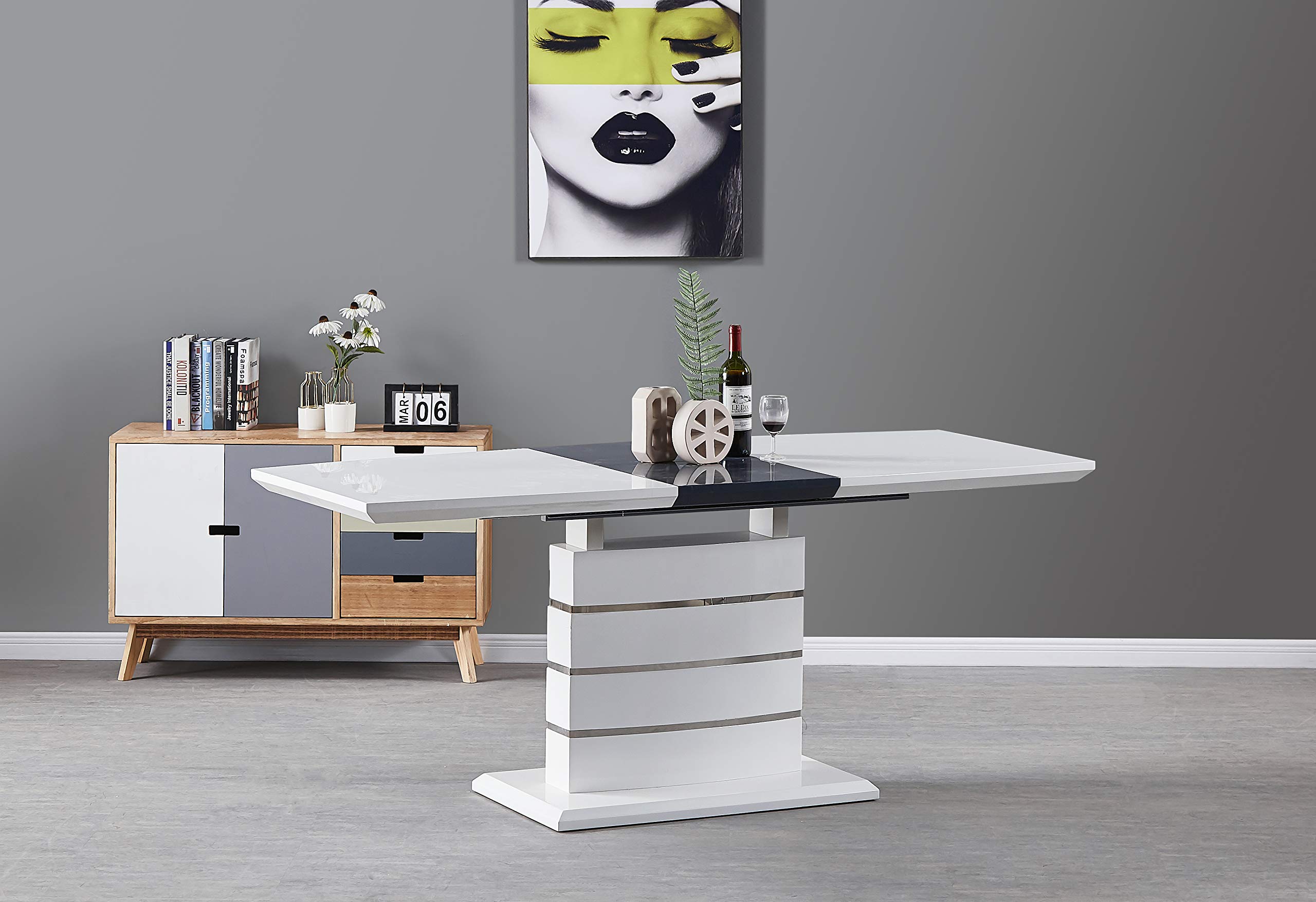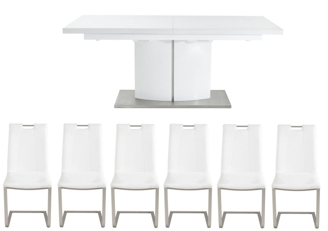 Extending Dining Table And 6 Chairs White Modern - Furnitureinfashion Is Offering Very Affordable Arctic White Extending Black Glass Dining Table With 6 Chairs : Chatsworth cream painted oval extending dining table and 6 chair.. Dinning table + 6 chairs dinning table with tempered glass & storage chairs with cushioned leather seat & backrest colour: Extendable dining table in white high gloss with 6 grey chairs. Marbled ceramic on glass top with black metal base. Protected by a satin smooth white lacquer finish, this handsome table can also be lengthened out for extra seats. Spillages are easy to wipe away with a damp cloth and dried with a.